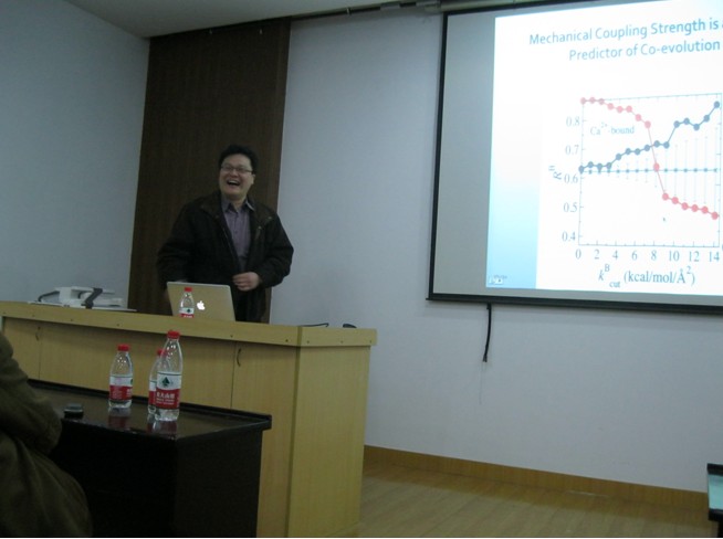 应浙江大学软物质科学研究中心/浙江大学物理系的邀请,美国加州大学伯克利分校化学及分子生物工程系朱智玮教授于2011年3月14日下午在浙江大学进行了学术访问,并做了题为“分子生物工程中的多尺度模拟:蛋白别构效应和解构纤维素微纤丝”的报告。来自理学部、工学部和医学部的软物质科学研究中心的主要成员以及近三十位同学参加了此次报告和讨论。