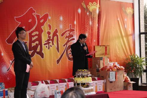 迎新团拜会上,学院表彰了2011年院级先进工作者,先进基层党组织、优秀共产党员和优秀党务工作者。同时,学院还为迈进耄耋之年的14位退休教师集体祝寿,感谢他们为学院做出的贡献,祝愿他们福如东海,寿比南山。随后,便是热闹丰富、充满活力的文艺表演和抽奖活动。