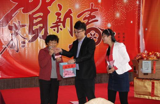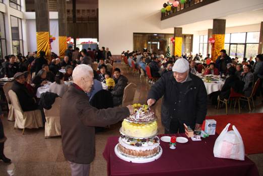 迎新团拜会上,学院表彰了2011年院级先进工作者,先进基层党组织、优秀共产党员和优秀党务工作者。同时,学院还为迈进耄耋之年的14位退休教师集体祝寿,感谢他们为学院做出的贡献,祝愿他们福如东海,寿比南山。随后,便是热闹丰富、充满活力的文艺表演和抽奖活动。