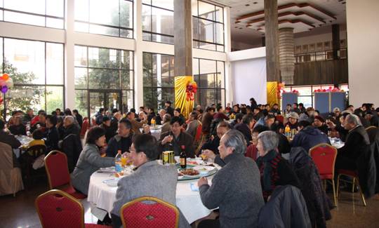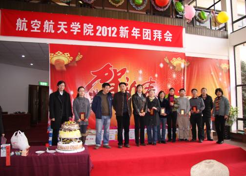 岁末年终,辞旧迎新。2011年12月30日中午,航空航天学院一年一度的新年团拜会在玉泉校区邵科馆一楼大厅举行。在这个美好的时刻,校长杨卫院士和校发展联络委员会副主席、原校党委副书记、力学系系友王玉芝教授一同出席了本次团拜会,与全院教职工欢聚一堂,举杯畅饮,共迎新年。