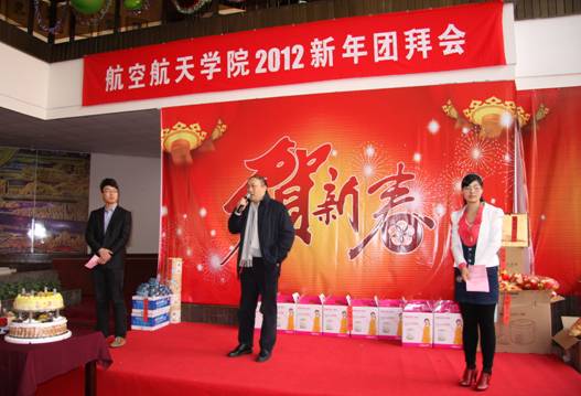 杨卫校长在百忙之中抽空来到学院迎新团拜会现场,与学院全体教职员工举杯同庆,共迎新年。杨校长在致辞中充分肯定了航空航天学院所取得的成绩,肯定了学院2011年在师资队伍、人才培养、科学研究等方面取得的显著增长,成果喜人。之后,杨校长对航空航天学院的未来发展提出了三点希望和要求:一是在学科建设上,希望各个学科在本领域的排名都有所进步,优势学科继续争取国家重点学科的支持;二是在人才培养上,希望学院广大教师要积极投入更多精力,加强人才培养工作;三是在科研经费上,争取在下一年度有更大的增长。