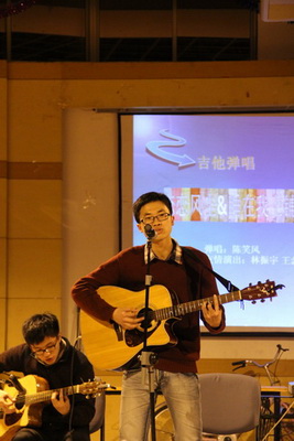 随后,晚会的三个环节在同学们的阵阵喝彩声中有条不紊地上演着。极具创意,笑料不断的古装金品,掀起了晚会的第一个高潮;真情流露,温馨感人的实验室合唱,让人不禁想起了那些朝夕相处,却要挥手道别的兄弟姐妹们,现场的空气中便掺杂了种离别的愁绪;清新秀丽,甜美动听的吉他弹唱,让大家有感于自己曾经浪漫却已远去的大学生活;情真意切,婉转动听的诗朗诵,娓娓地道出了求是园中的点点滴滴。