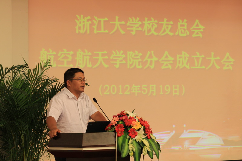 桃李芬芳,绿意盎然。2012519,在浙江大学迎来建校115周年校庆之际,为了广泛联络和凝聚校友,搭建校友沟通的桥梁,共谋母校的发展大业,航空航天学院隆重召开校友分会成立大会,共叙师生情谊,共襄发展盛事。浙江大学副校长、校友总会副会长张土乔教授应邀参会并致辞,航空航天学院院长、航天工程管理与测控技术专家沈荣骏院士专程从出差地赶到学校出席大会并讲话,原浙江大学党委副书记、力学系系友、浙江大学发展联络委员会副主席王玉芝教授应邀出席大会。会议由学院党委吴丹青书记主持。