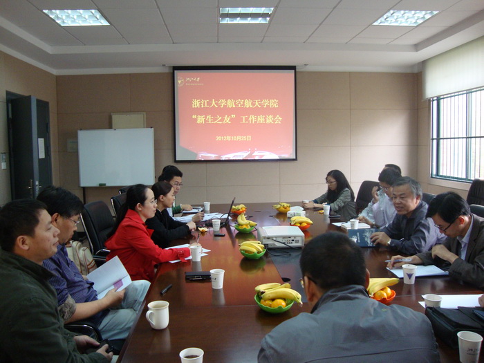 10月25日,航空航天学院在教五326会议室举行了2012级“新生之友”座谈会,副院长李平教授、蓝田学园担任班主任工作的两位老师等16位“新生之友”教师参加了座谈会,和学生们一起探讨如何做好2012级的“新生之友”工作。