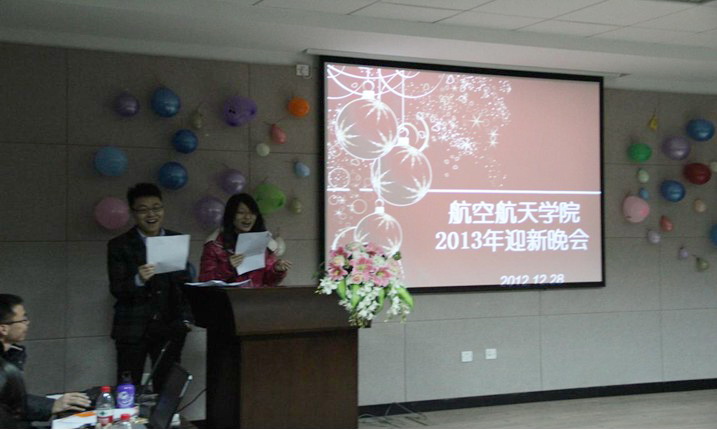 2012年的脚步渐行渐远,2013年即将到来。值此元旦之际, 航空航天学院研博会、学生会于12月28日在教五333举办了一场用欢乐驱赶严寒,用热情灌溉青春,用真情畅想新年的元旦晚会。