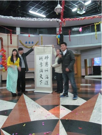 晚会最后,2013届毕业生向学院赠送了“师恩似海深,桃李满天下”的感恩卷轴,常务副院长郑耀老师代表学院致辞。郑院长还结合自己的青春岁月,谈了读书时恩师对自己成才道路的重要影响,让毕业生受益匪浅。
