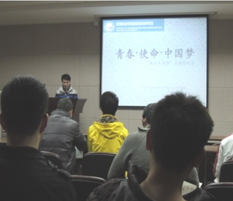 为深入学习与贯彻党的十八大精神和全国“两会”精神,深化和推进共青团主题教育活动,响应学校团委号召,3月31日晚,航空航天学院2010级本科生在玉泉校区教五333会议室举办了“我的中国梦”主题讨论会。本次主题讨论活动由2010级工程力学班和飞行器设计班共同举办,两个班级近30名本科生参与讨论并积极发言,活动氛围热烈。飞行器设计1001班班主任罗浩老师受邀参与讨论活动。