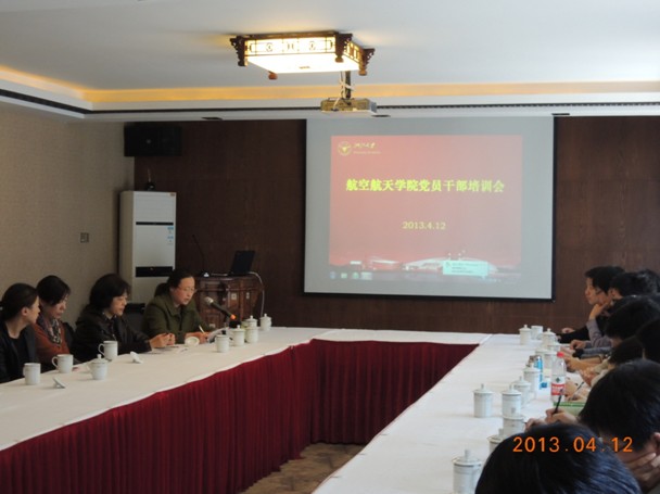 2013年4月12日下午1点,航空航天学院党委在西溪湿地果岭度假酒店会议厅召开了2013年度学院党员干部培训会。会议由学院党委书记吴丹青主持。