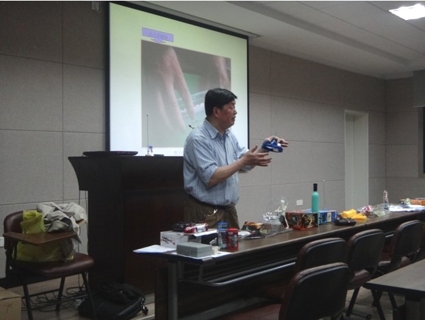 本次讲座邀请了原浙江大学理论力学创新应用实验室副主任,中国随机振动学会理事长庄表中教授,报告题目是“美丽中国会有更多型式的机器人——机器人机构的力学分析”。庄老师在讲座中详细地介绍了各种各样形式和功能的机器人,现场演示了自己发明并参与设计的用于力学实验教学的小玩具,并现场赠给同学们不少小玩具。