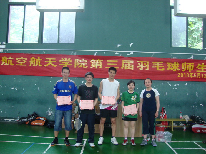 为了丰富同学们的课余生活,进一步推动体育活动开展,增强各系所和各班级的互相交流,增进师生间的相互了解,由航空航天学院研博会和院工会联合主办的第三届师生羽毛球联谊赛于2013年5月12日在玉泉校区健身房圆满落幕。院党委副书记谢红梅、团委书记戴志潜、科研科周利霞、空天信息研究所解利军、潘海斌等老师和同学们结对参加了比赛。