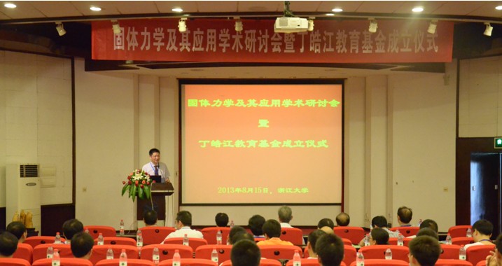 与会议同时举办的还有“浙江大学丁皓江教育基金”成立仪式。丁皓江先生是我国著名固体力学家,1934年8月15日出生于江苏常州,1957年北京大学数学力学系毕业后一直在浙江大学工作,直至2005年退休。他于1984-1992年任浙江大学工程力学系主任,1990-1998年任中国力学学会常务理事、中国力学学会教育工作委员会副主任,1998-2002年任中国力学学会理事、浙江省力学学会理事长。丁皓江先生为浙江大学力学学科的发展作出了重要贡献,于2005年获颁代表浙江大学教师最高荣誉的竺可桢奖。