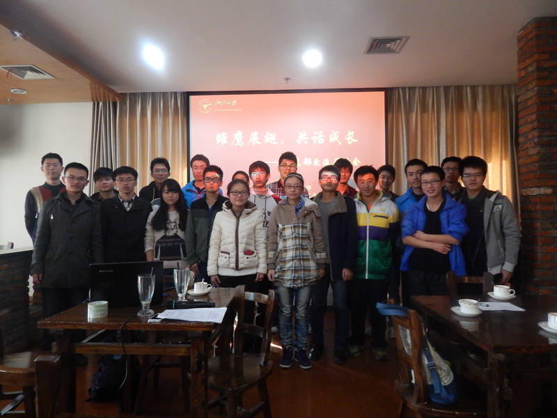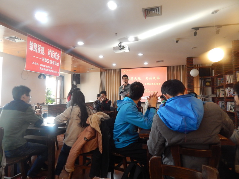 11月30日下午,应蓝田学园第十党支部邀请,航空航天系研究生第三支部支部书记张林、副书记李绍磊两位同学以及工程力学大四本科生薛烨光同学赴紫金港安中大楼建工之家参加了题为“雏鹰展翅,对话成长”的茶话交流会。