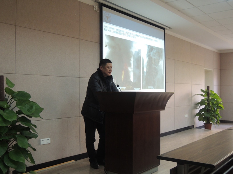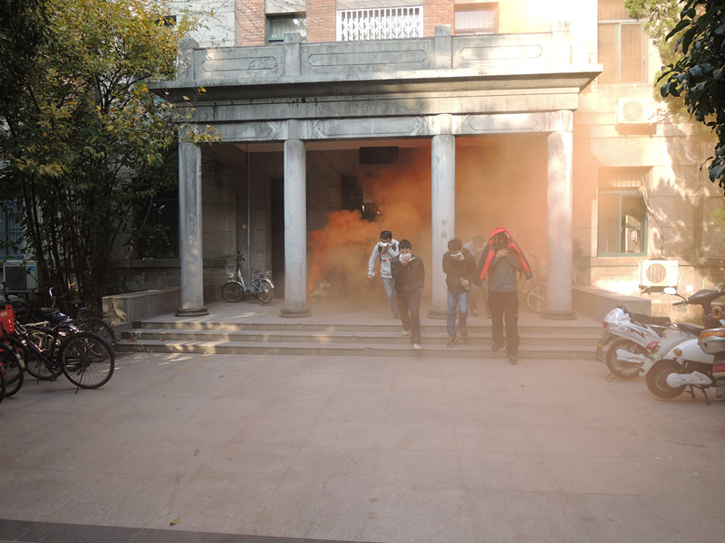 2013年12月11日下午,航空航天学院邀请了玉泉保卫办同志在教五开展消防安全培训。培训内容包括消防安全知识讲座、应急疏散演练和灭火训练。在知识讲座阶段,玉泉保卫办陈忠云主任为师生作了题为“增强安全防范意识,提高自我保护能力”的报告,讲解了消防安全基本知识,强调日常生活中需要增强安全方面的意识,重点指出如何防范安全隐患及如何正确扑灭小火。在应急疏散环节,当警报声响起,正在教五楼里工作学习及上课的师生员工,迅速做出反应,用湿毛巾捂住口鼻,在楼层疏散员的引导下,有序地撤离到安全地点。在灭火演练环节,师生员工在保卫办老师的指导之下,练习使用灭火器扑灭明火。