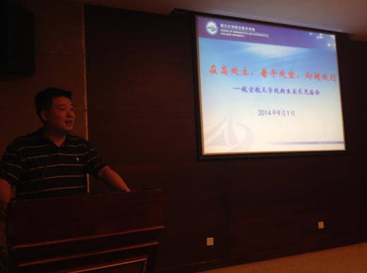 9月1日上午9点,航空航天学院2014级新生家长见面会会在紫金港校区圆正启真酒店举行。学院党委书记吴丹青、副院长邵雪明、黄志龙、金仲和、党委副书记戴志潜、教师代表力学系系主任陈伟球、飞行器设计研究所副所长邹建锋、微小卫星研究中心王春晖、教学管理科科长杨建群,辅导员刘玉娥等老师参加了本次家长会。本次家长见面会吸引了60余位新生家长的积极参与。