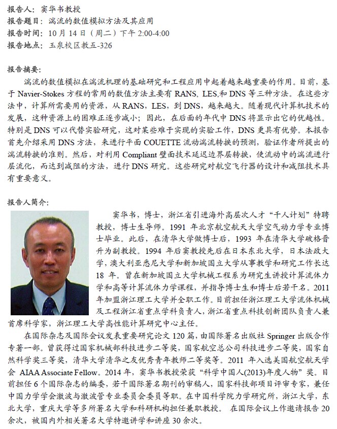 关于浙江理工大学窦华书教授(浙江大学兼任教授)学术报告的通知