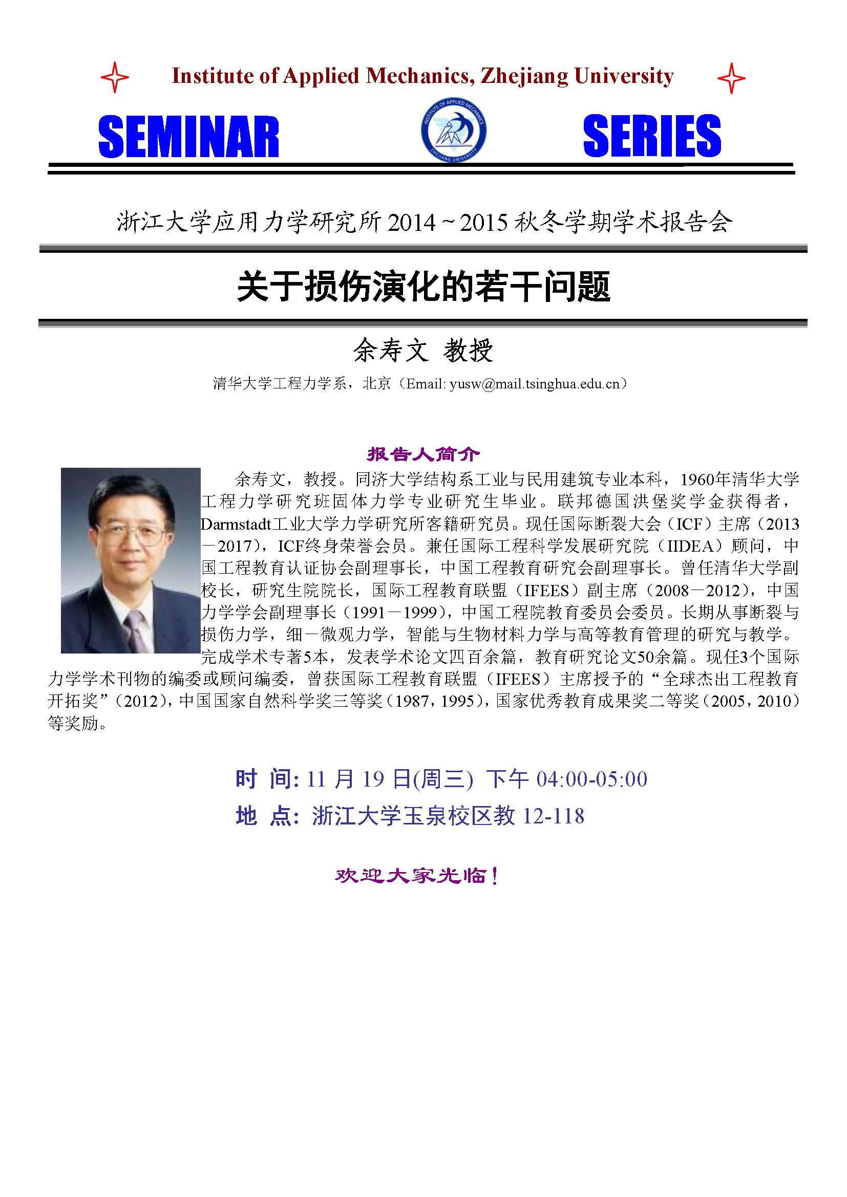 航空航天学院关于清华大学余寿文教授学术报告的通知