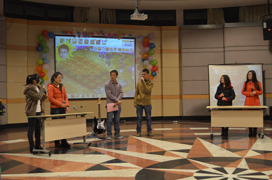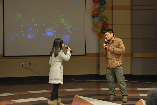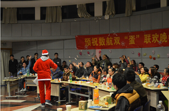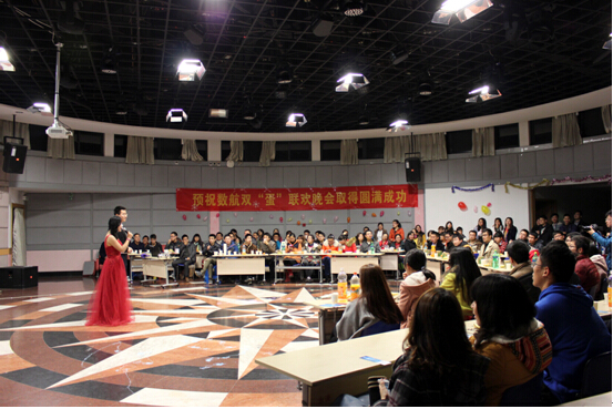 20141225日晚上7:00,由我院和数学系共同举办的《数航双“蛋”联欢晚会》在浙江大学玉泉校区永谦活动中心B座三楼多功能活动厅隆重举行。出席本次晚会的嘉宾有:航空航天学院团委书记秦婧雅老师、数学系团委书记蔡云老师、辅导员林斌斌老师、信息与电子工程学系研博会主席程东、能源工程学院研博会主席朱子钦、生物医学工程与仪器科学学院研博会副主席王鋆川、高分子科学与工程学系研会副主席何蔼、机械工程学院博会主席代建俊、控制科学与工程学系研博会主席马信达等。来自两院系的近三百名学生参加了联欢活动。