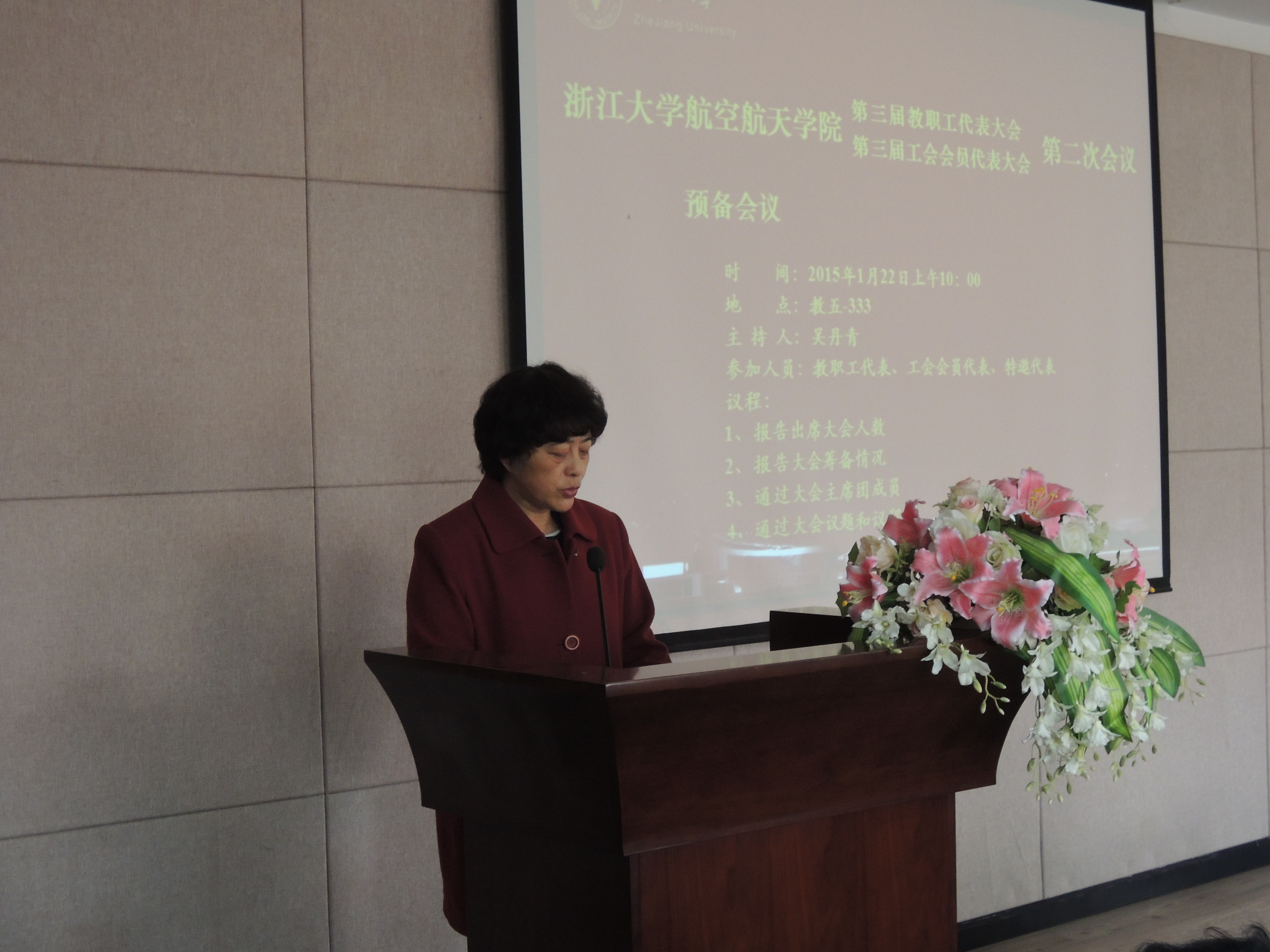 上午10点,首先由学院党委书记吴丹青主持召开本次大会的预备会议。在预备会议上,吴丹青书记通报了出席本次大会的人数情况、主席团成员名单,审议通过大会议题和议程。
