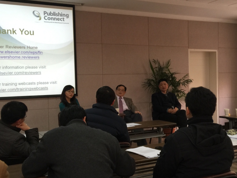 张靖博士首先从出版业本身出发,对出版业的历史和目前状况做了回顾,并简单对期刊审稿现状、审稿人扮演的角色、以及如何做一个称职的审稿人进行了介绍。余同希教授则从主编的角度对审稿过程中许多大家关心的问题进行了解释,如审稿周期、审稿人的关注点、以及主编如何做出决定等等。在茶歇之后,余教授和张博士又与在座的老师和同学们进行了面对面的交流,并对大家提出的问题进行了详细的解惑。余教授还以自己编辑过的两篇论文为例对当时的审稿意见进行了逐句的讲解,籍此说明了审稿的要点。
