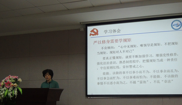 首先,学院党委书记吴丹青作了《学习践行“三严三实”》的专题讲座,从“三严三实”的提出背景、内容诠释、学习体会几方面进行了解读。吴丹青讲到,“三严”是对修己正身之道的凝练和提升,也是对我们共产党人为政之规的高度概括;“三实”是对领导干部工作生活作风建设的更高更实要求。“三严”的本质就是懂规矩:严以修身需要学规矩,严以用权需要遵规矩,严以律己需要守纪律;“三实”的本质就是讲诚信:诚信是谋事之基,诚信是创业之魂,诚信是做人之本。