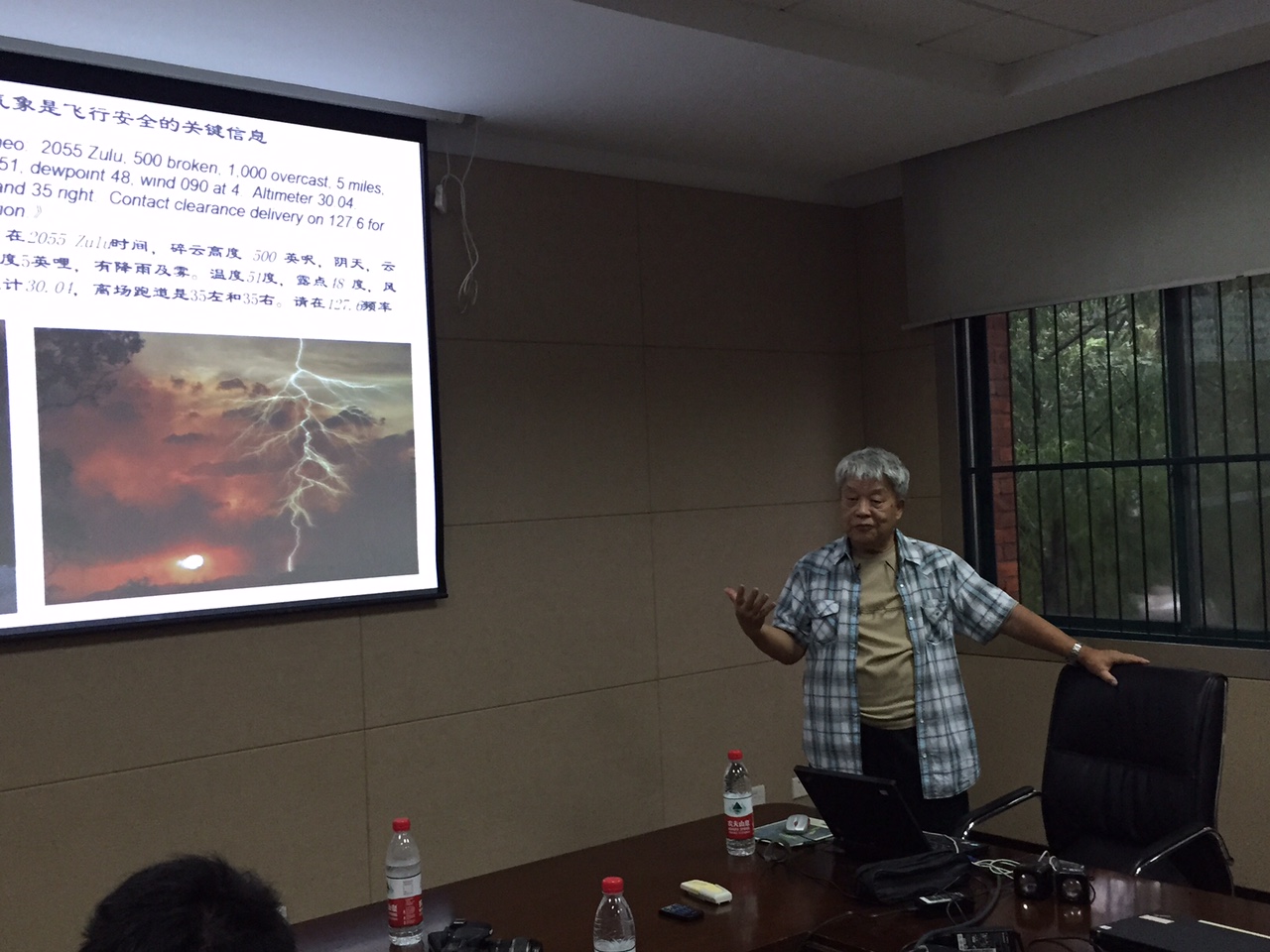 陈介中教授作了题为《低空风切变预警》的报告。陈教授与大家分享了他几十年的研究心得,从低空风切变预警的重要性、研究进展与成果、现有的应用案例等方面作了阐述。报告结束后,陈教授与参加报告会的师生进行了互动交流。
