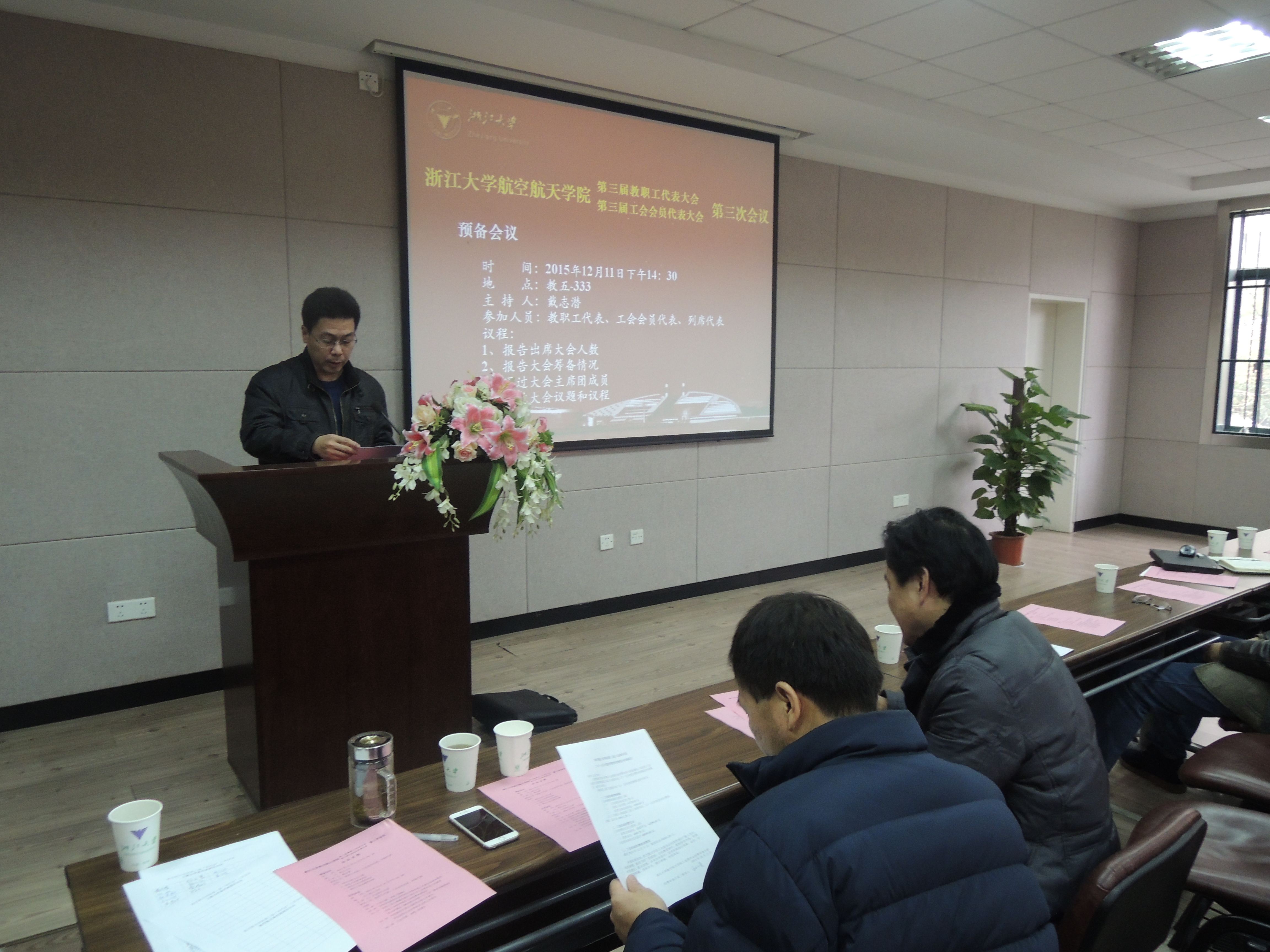 12月11日,航空航天学院第三届教职工代表大会、第三届工会会员代表大会第三次会议在玉泉校区教五333会议室隆重召开。学院党政班子全体成员、第三届“双代会”正式代表和列席代表共50余人参加会议。