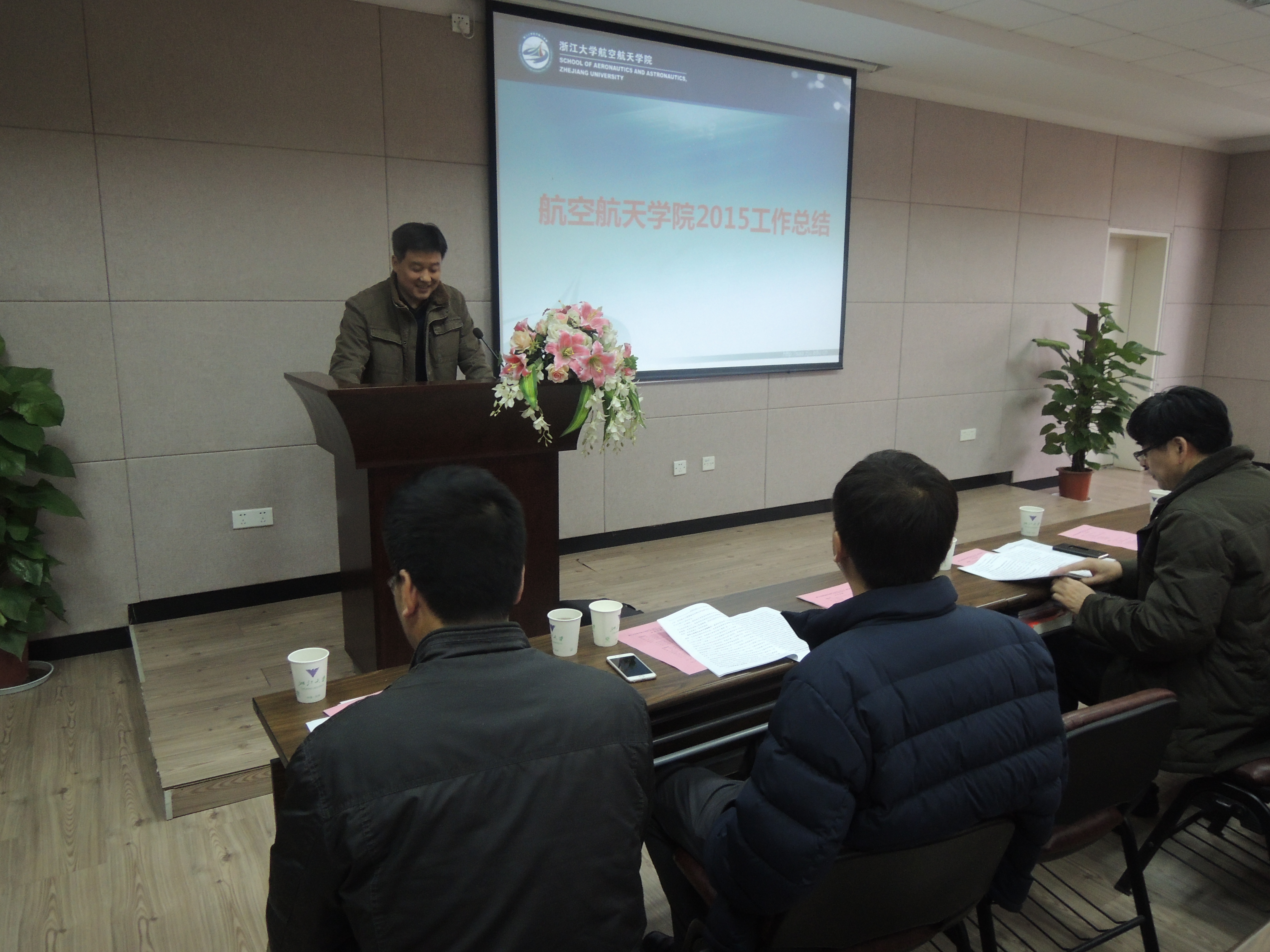 邵雪明副院长代表学院党政班子向大会作了学院2015年工作总结及后续工作要点报告。他从学院师资队伍建设、教育教学、科学研究、学生工作、党建工作、发展联络等多方面总结了学院过去一年来所取得的成绩,并报告了学院经费收支情况。会议审议通过了《航空航天学院“十三五”事业发展规划》。