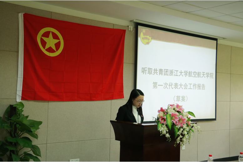 航空航天学院团委主持工作副书记秦婧雅老师作了题为高举旗帜、坚定信念、凝心聚力、开拓创新,共创航空航天学院共青团工作新局面——共青团浙江大学航空航天学院第一次代表大会的工作报告。航空航天学院团委始终坚持把大学生思想政治教育放在工作首位,结合当代大学生的特点和时代潮流,线上线下联动,广泛开展理论学习、主题教育,引导广大团员青年树立正确的世界观、人生观、价值观,认识自身的社会责任和时代使命。以“空天学术文化节”为载体,弘扬航天精神,展现学院魅力。紧紧围绕“弘扬航空航天精神”这一主旨,通过学术交流、科技创新、重点单位或重点任务走访和综合素质等四大主题模块,多年已积累了一批主题鲜明、深受学院师生欢迎的特色活动,如航空航天名师讲堂、航空航天知识竞赛暨 “飞豹杯”航空航天知识邀请赛、全国航空航天模型锦标赛、“寻找力学哥”—趣味堆硬币比赛、小飞机比赛、重点单位或重点任务重点单位或重点任务单位暑期社会实践等。与会代表认真听取并审议通过了工作报告。