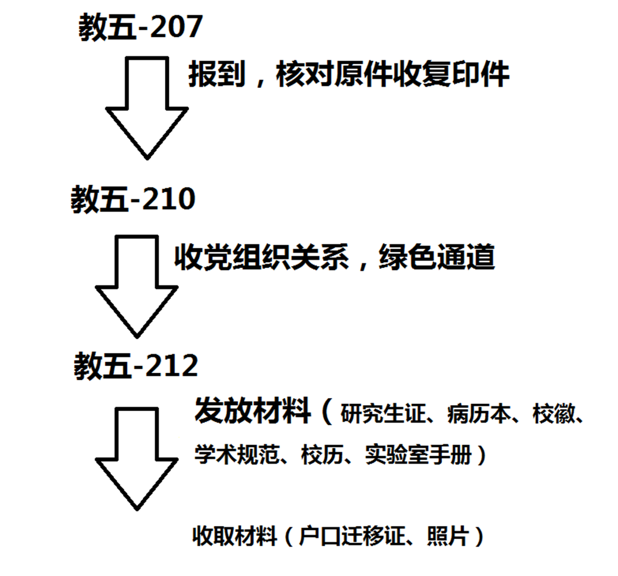 以上原件材料查验后当场交还同学,留下相应报到资料的复印件,符合报到条件的同学现场发放号码牌,凭号牌到212领取材料
