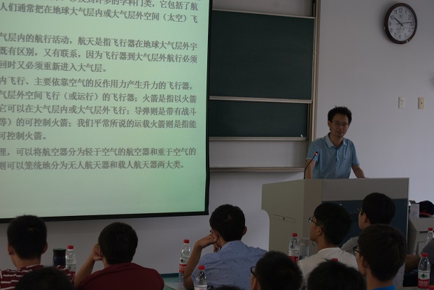 2016年9月25日上午,2016级工科实验班(航空航天与过程装备)类专业宣讲会在紫金港东二-102举办。此次宣讲会旨在全方位介绍大类内工程力学、飞行器设计与工程、过程装备与控制三个专业情况,并由各专业负责人为同学们详细介绍本专业的发展现状、研究方向和培养计划,以便帮助2016级航过大类学生确认主修专业。航空航天学院常务副院长邵雪明教授、飞行器设计与工程专业负责人陈伟芳教授、工程力学专业赵沛副教授、1604班班主任谢芳芳老师、学院教学科科长何姗老师、周利霞老师及学工办秦婧雅老师出席了本次活动。