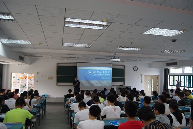 首先由邵雪明常务副院长从历史沿革、师资力量、教育教学、科学研究等方面,全面介绍了航空航天学院的整体情况,并从专业选择和未来发展的角度分享了切身经历。随后,工程力学专业赵沛老师用生动的语言讲解了工程力学研究什么、学了能做什么、到底难不难学,以及力学哥的跨界发展,使同学们耳目一新,更深入地了解了力学专业。飞行器设计与工程专业陈伟芳老师结合专业培养目标分析了专业的国家背景和发展前景,并详细介绍了学院老师从事的科研方向,让同学们对专业有了更进一步的了解。两位班主任老师赵沛和谢芳芳从同学们关心的专业方向角度做了耐心地讲解,还给班级同学开了班会。教学科和学工办老师就学业和就业两个方面做了详细地介绍。