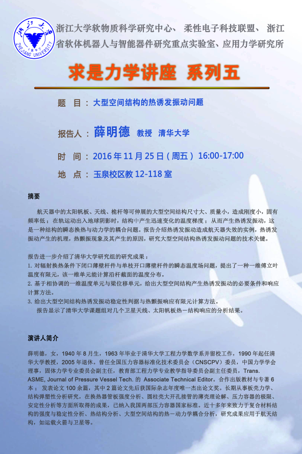 报告题目:大型空间结构的热诱发振动问题