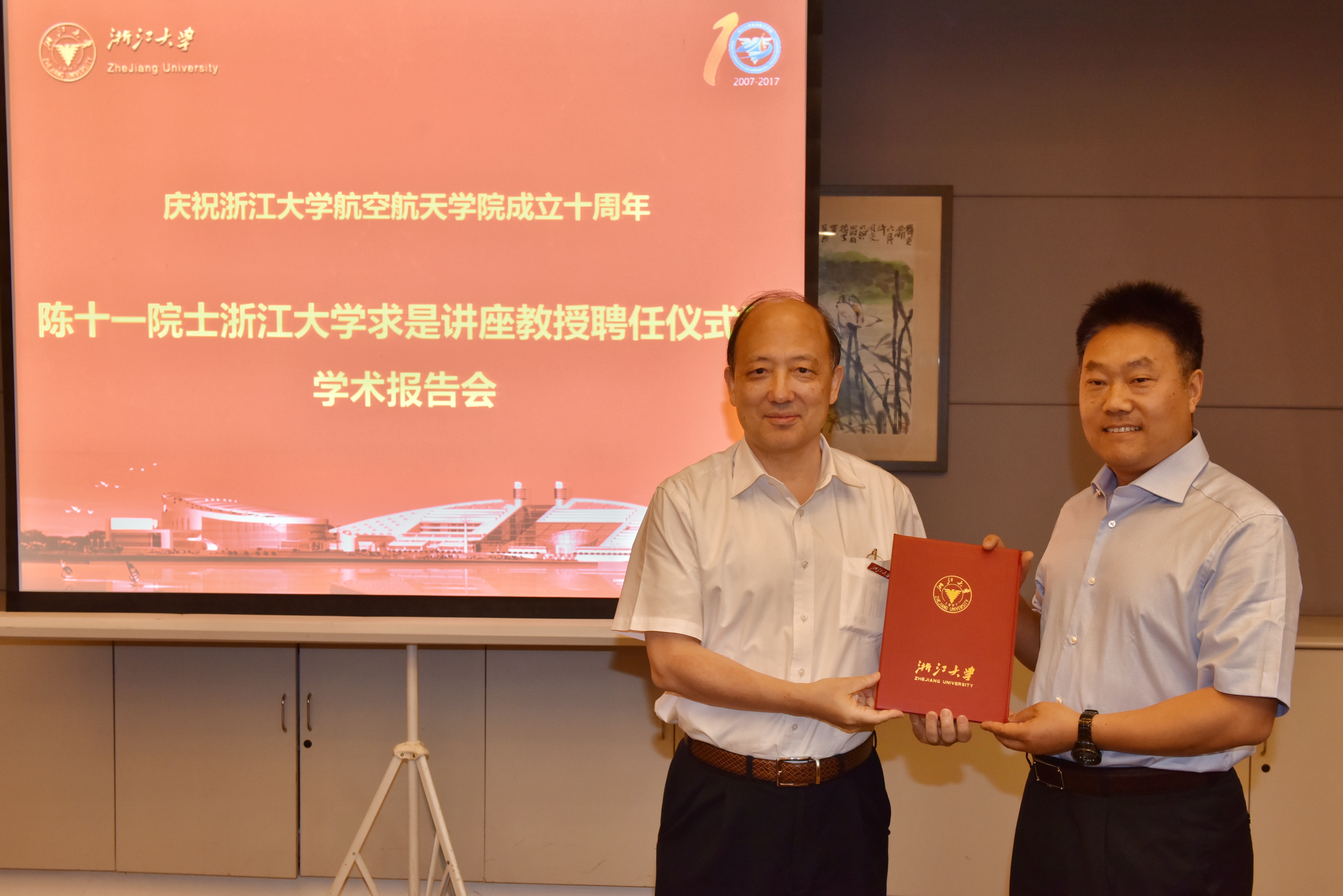 陈院士一直来非常关心和支持母校的发展,也一直和我们学院的力学,航空宇航科学与技术等学科保持着密切的合作交流,多次对学院相关学科的发展提出宝贵建议,去年年初,我们学院通过“百人计划”引进了陈院士的优秀学生夏振华博士。相信陈十一院士受聘浙江大学求是讲座教授,必定可以大大推动我院相关学科在人才引进和培养、科学研究、国际交流等方面的工作。