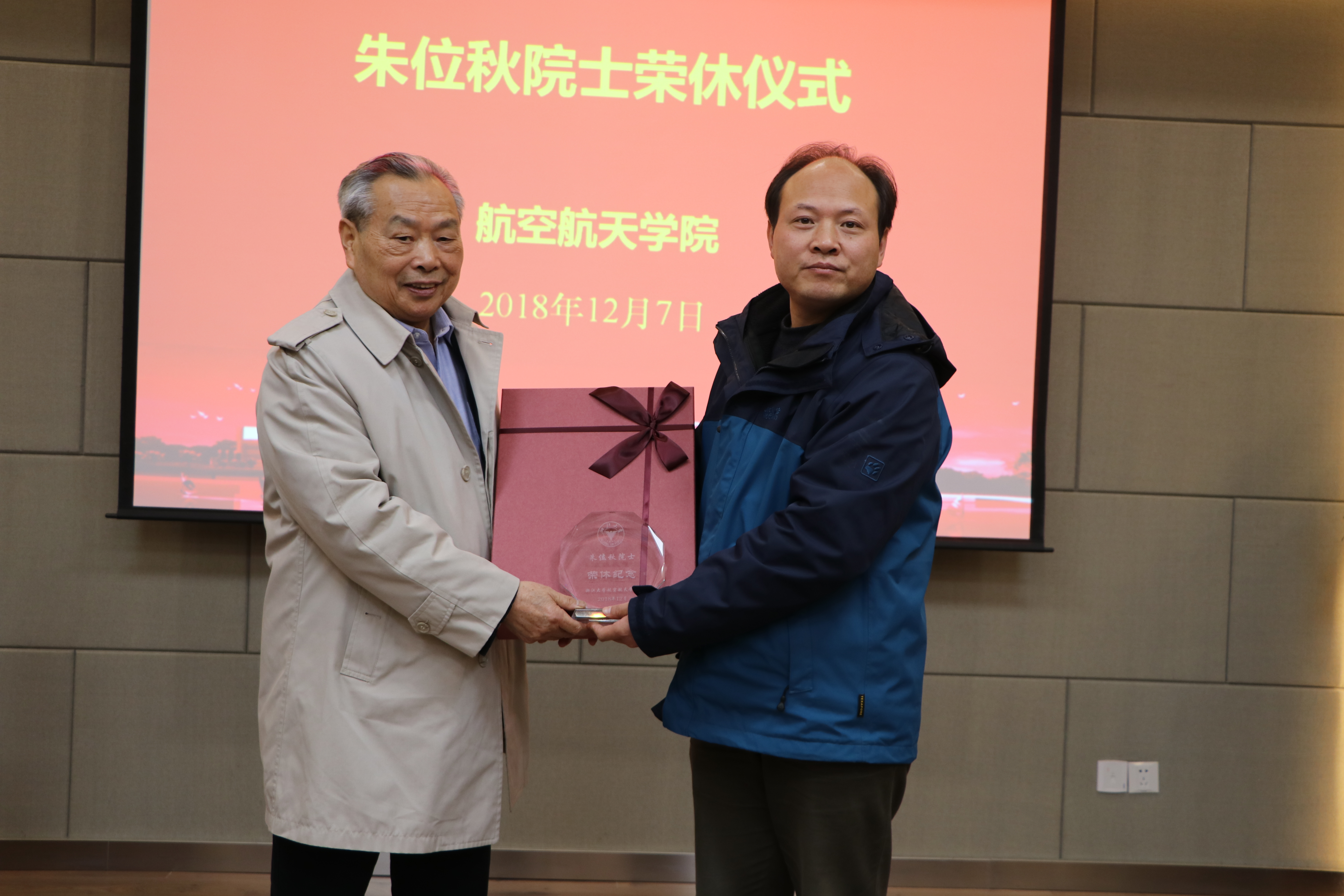 “早在2005年全国力学大会上,就曾与朱院士一起探讨该如果建设航空航天学院。朱院士默默地为航院的成立、建设和发展付出了很多”,郑老师道出了许多不为大家所知的朱院士在学院成立之初所做的贡献。他指出,朱院士为航院的发展制定了前瞻性的目标,这始终激励着大家不断前行。今天的荣休仪式并不是结束,学院师生会继续向朱院士学习,并积极请教朱院士予以指导。