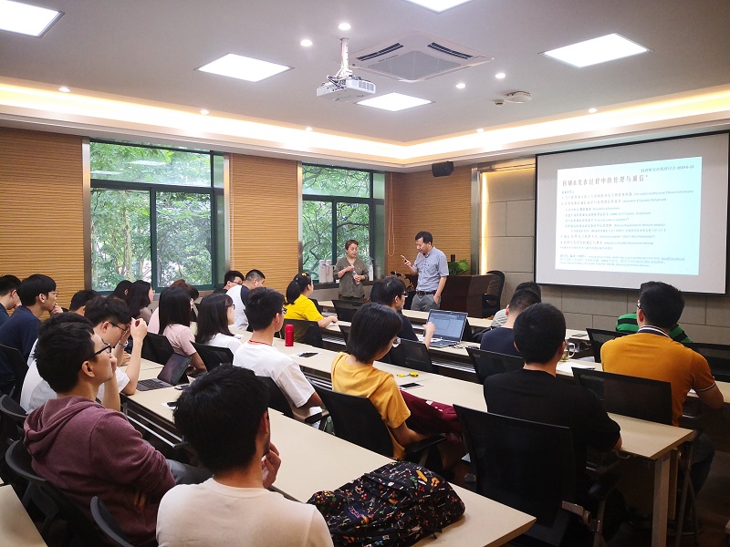 张月红教授曾为ALPSP(全球学术与专业出版者协会)与PILA/CrossRef(全球出版链接协会)董事会委员;2019年6WCRI(第6届世界科研诚信大会)咨询委员会委员,发表SSCI与SCI国际论文多篇, 其中3篇短文发表在《自然》,并为《科学》审稿,多次受邀在国内外学术大会做报告。2016年在Springer出版专著“Against Plagiarism:A guide for Editors andAuthors (反剽窃:对编辑与作者的指南)”。张教授从中国文化中的德与信引出,介绍了当今世界领先的七大中国科技及个别伦理问题,用几组数据看诚信意识与伦理教育的需求,分析了诚信/伦理及之间的关系,最后归纳总结了科研与发表中的诚信与规范,并用多个案例做了讲解与阐释。报告深入浅出,旁征博引,极大地吸引了老师同学的兴趣,讲座后大家纷纷希望留存资料继续学习。