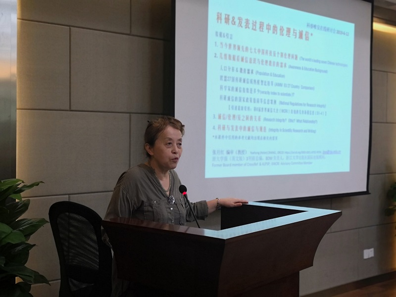 6月26日上午,航空航天学院教学论坛之第二十五期活动邀请了浙江大学学报(英文版)前总编张月红教授作报告。张月红教授报告的题目为《论文写作与科研伦理》,近60位学院教师和研究生参加了此次报告,玉泉校区教五333会议室座无虚席。报告会由曲绍兴副院长主持。