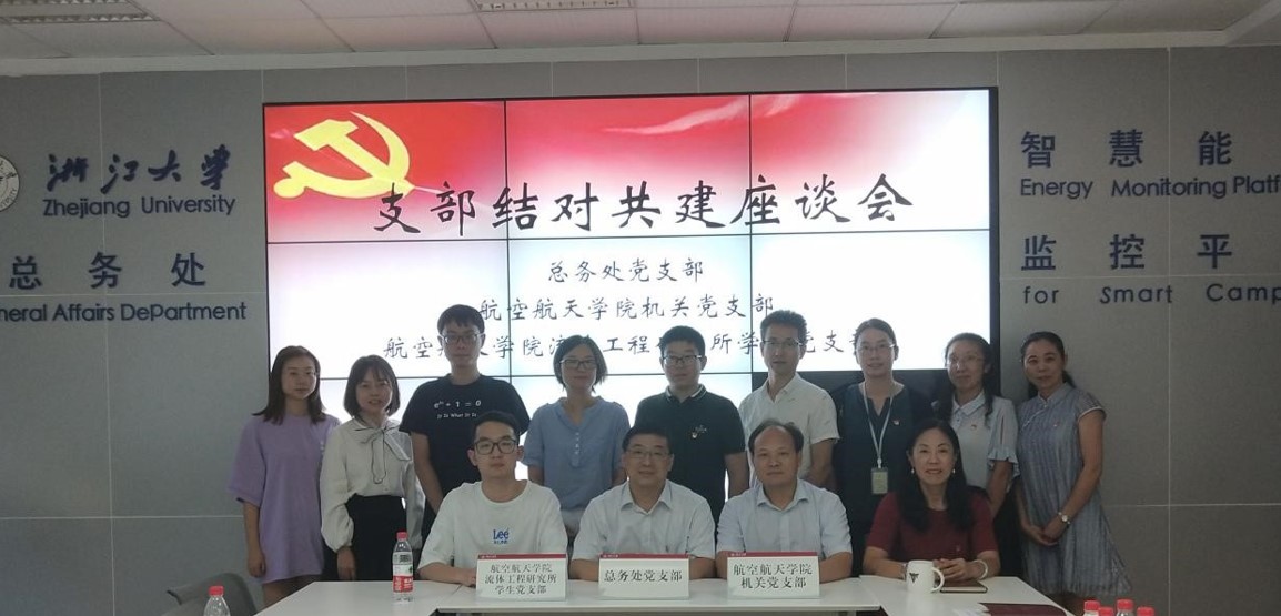 2019年9月20日下午,航空航天学院机关党支部、流体工程研究所研究生党支部与我校总务处党支部在紫金港校区纳米楼举行结对仪式,并通过座谈讨论相关事宜。总务处党支部书记朱宇恒及支委成员、航空航天学院党委书记毕建权及机关党支部支委成员、流体工程研究所研究生党支部书记刘炳瑞及支委成员参与座谈。