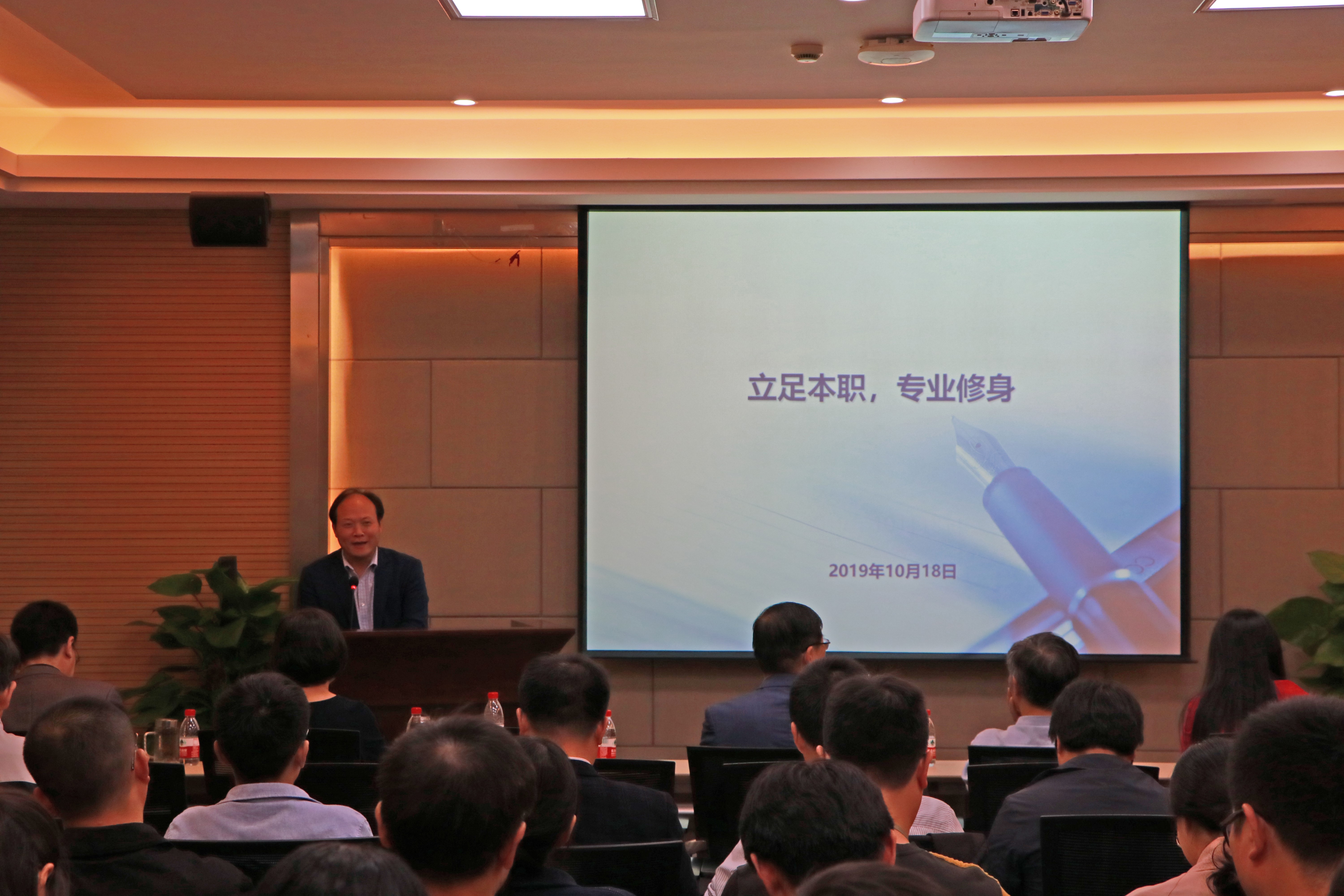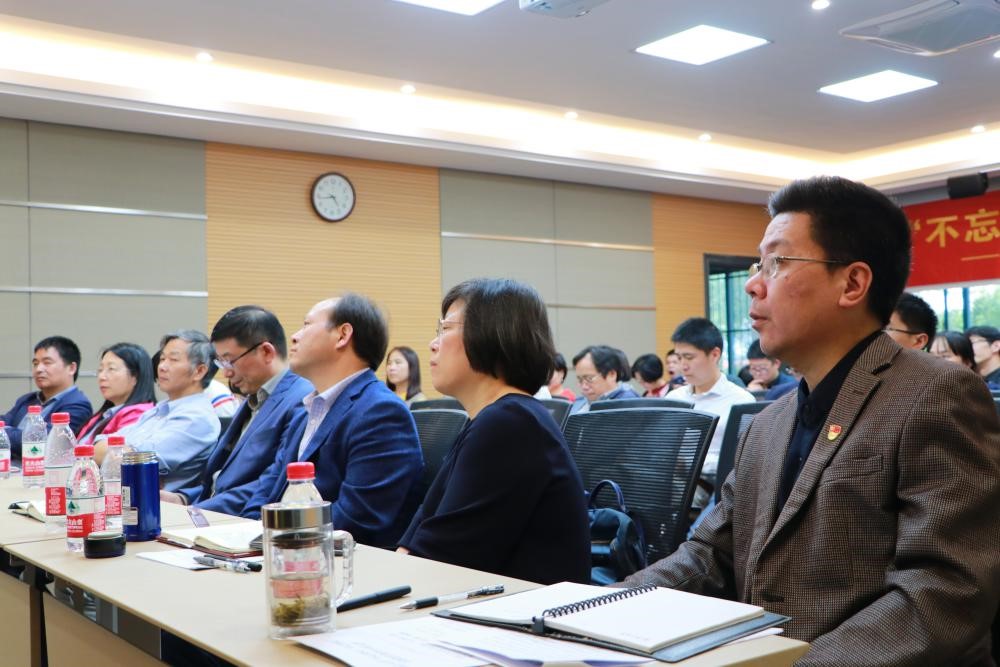 毕建权书记则根据在总务处和学院党委工作的经历,以“立足本职、专业修身”为主题,表达了自己对校院机关工作“专业化”的理解。毕书记谈到在工作中我们要践行初心使命要求的能力建设,事业上追求高远。最后,毕书记提出我们要涵养专业精神,在实践锻炼中学习,增强自身专业能力的要求。
