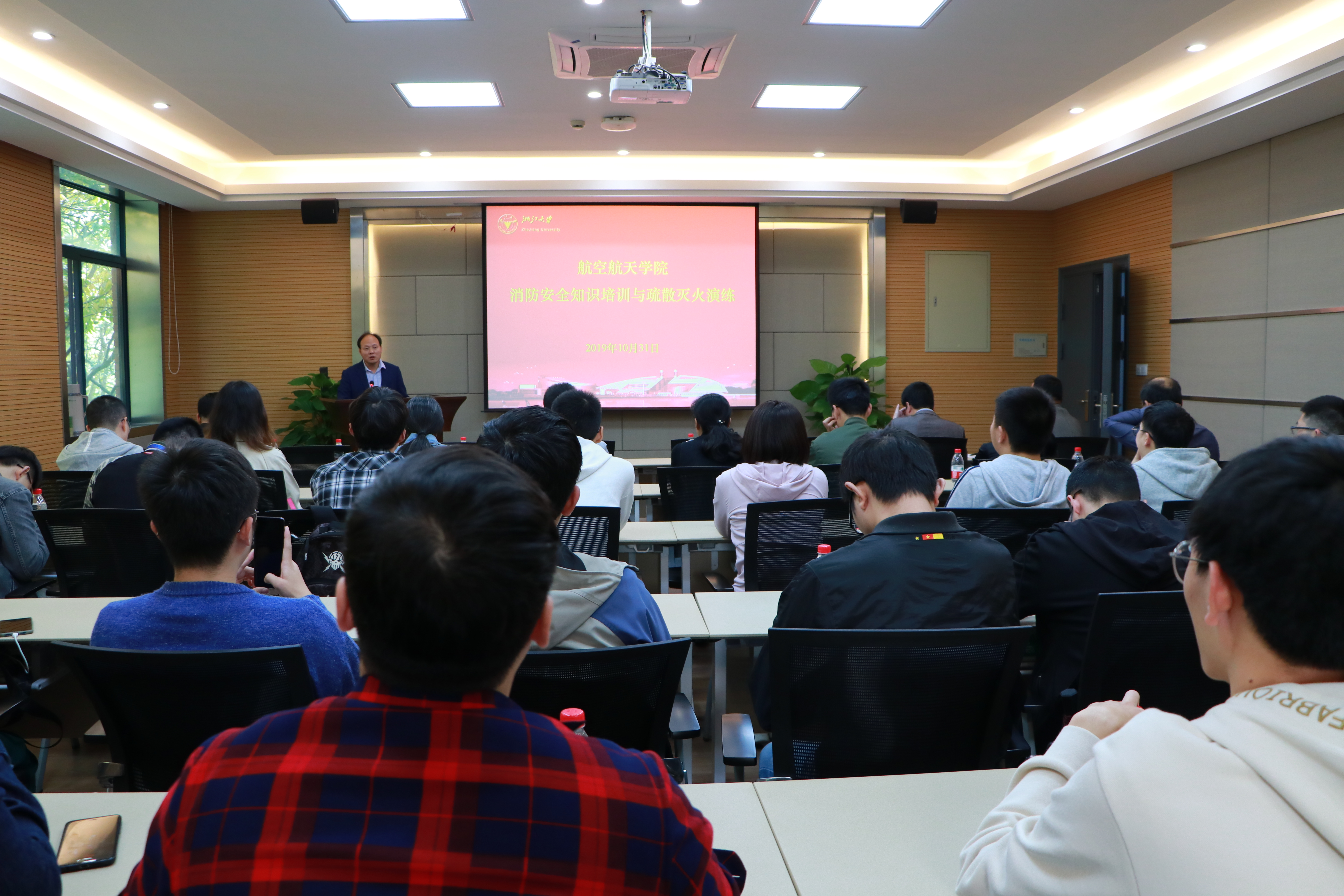 “关注消防,警钟长鸣”。为进一步增强航空航天学院师生的消防安全意识,提高火灾应变防控能力,10月31日下午,学院邀请玉泉校区保卫办主任陈忠云等老师开展了消防安全知识培训与疏散灭火演练。学院党委书记毕建权、党委副书记戴志潜及50余名师生参加了本次活动,本次活动由党委书记毕建权主持。