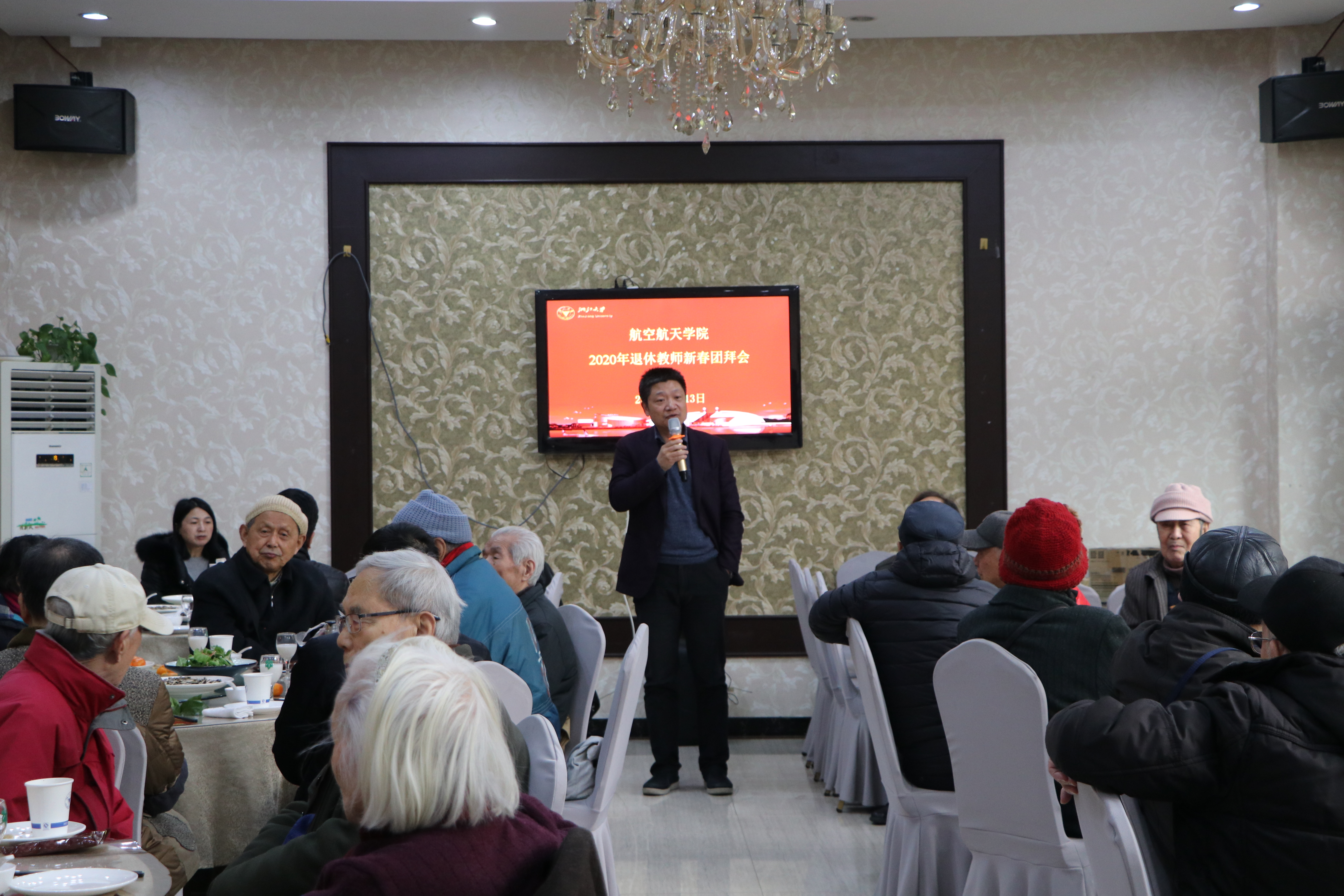 113日,航空航天学院在玉泉邵科馆111厅成功举办了2020年退休教师新春团拜会。学院常务副院长陈伟球、党委书记毕建权、党委副书记戴志潜和近50名退休教师参加了本次活动。