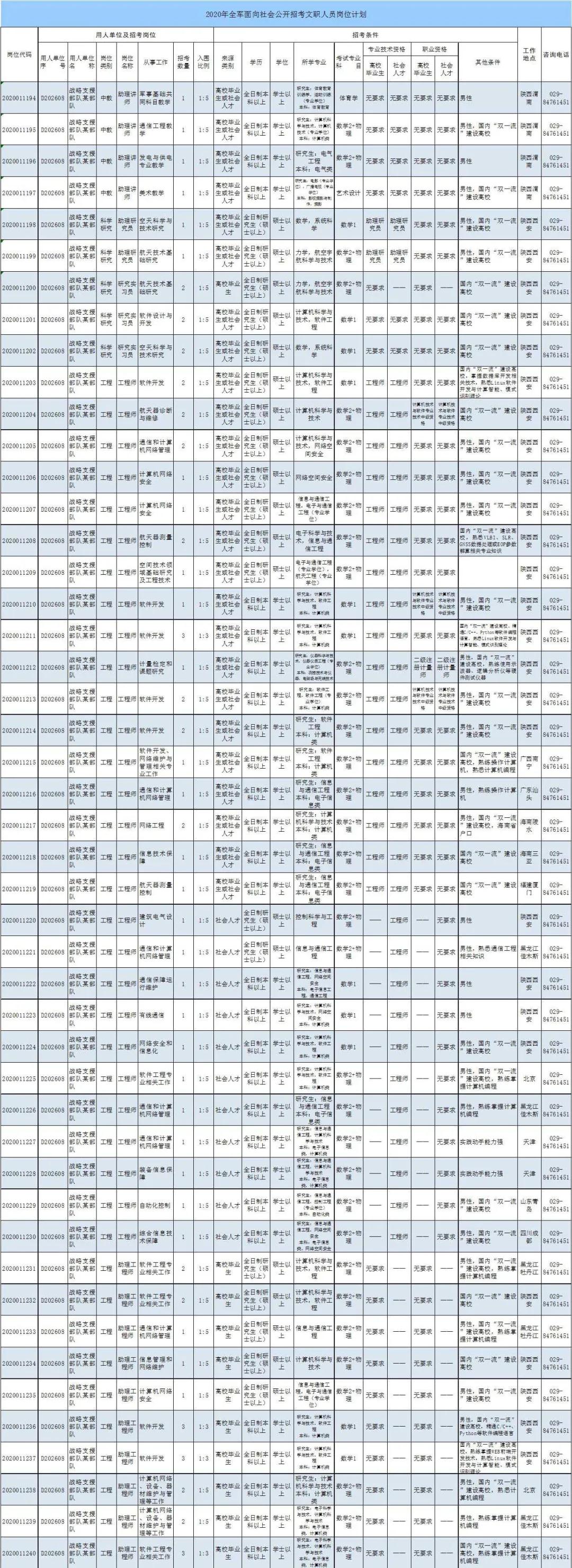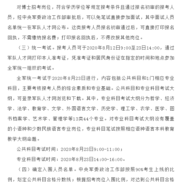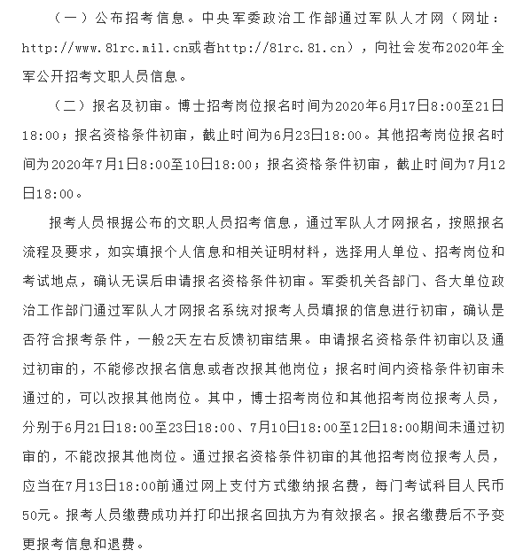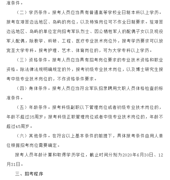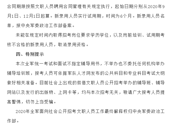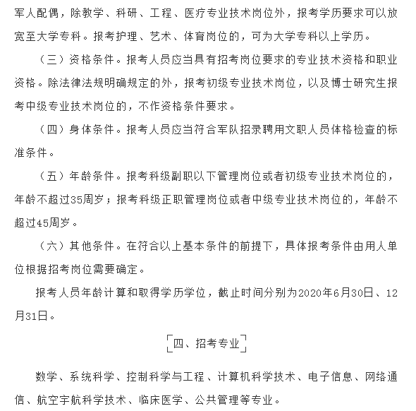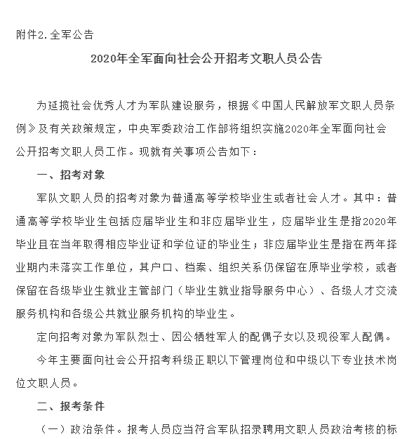 2020年文职人员招聘公告