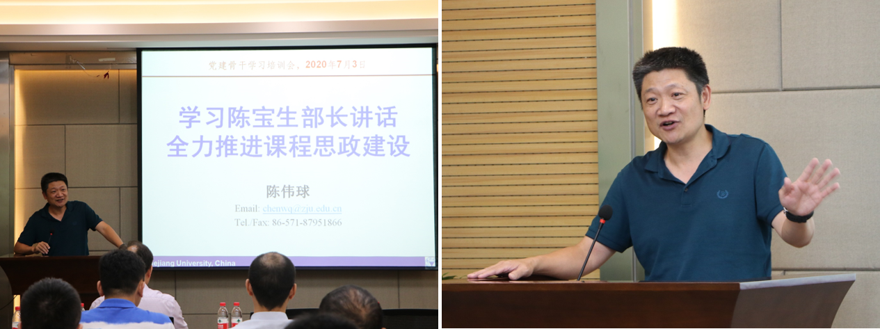 在建党99周年之际,为贯彻落实党中央关于常态化疫情防控的决策部署,让党旗始终高高飘扬在疫情防控、返校复学、事业发展全过程全方位,根据学校有关要求,学院党委结合实际,在全院组织开展“党旗飘扬悟初心,西迁精神明使命,‘疫’同厚植求是魂”主题党日活动。7月3日,在玉泉校区教五333会议室召开党建骨干学习培训会,由学院荣获浙江大学优秀党员称号的高琪老师、党委书记毕建权、常务副院长陈伟球为全体支部书记和支委上党课,并作党建业务培训。会议由学院党委副书记戴志潜主持。