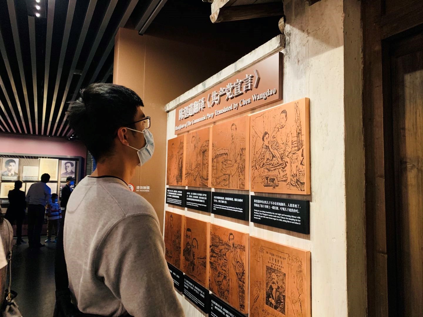 大家参观了“起点”、“前赴后继,救亡图存”、“风云际会,相约建党”、“群英汇聚,开天辟地”和“追梦”五个专题战区。这五部分展区将中国共产党领导中国人民争取民族独立、人民解放和实现国家富强、人民幸福的伟大征程,进行了全面而直观的生动展现。大家观看了许多珍贵的图片及实物展示,集体聆听了纪念馆简介,从中了解历史故事。