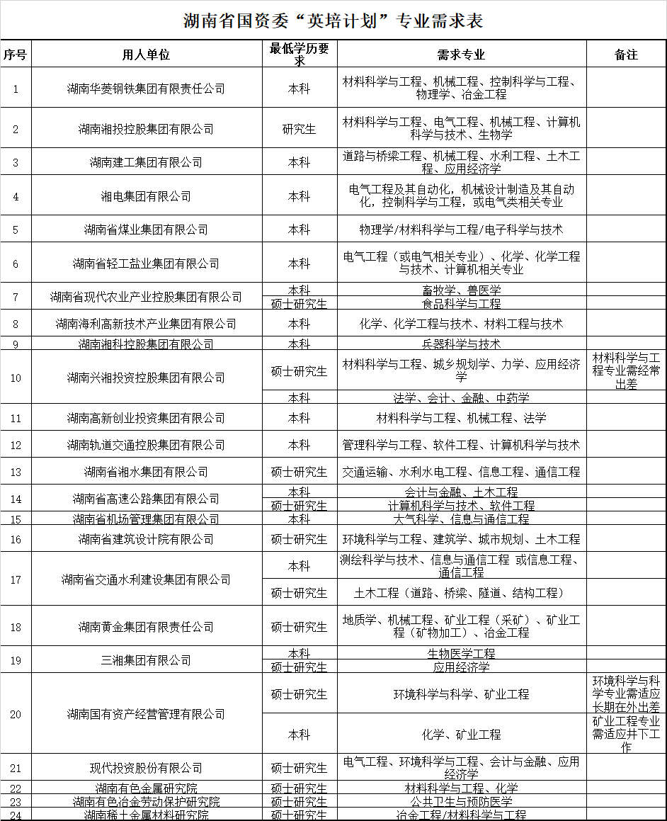 为深入学习贯彻习近平新时代中国特色社会主义思想,推动湖南省属监管企业(以下简称企业)人才工作发展,为企业“大力发现储备年轻干部”,促进企业高质量发展,根据《省国资委“英培计划”人才管理暂行办法》,现面向国内高校选拔2021年度“英培计划”人才。为切实做好人才选拔工作,现将有关事项公告如下: