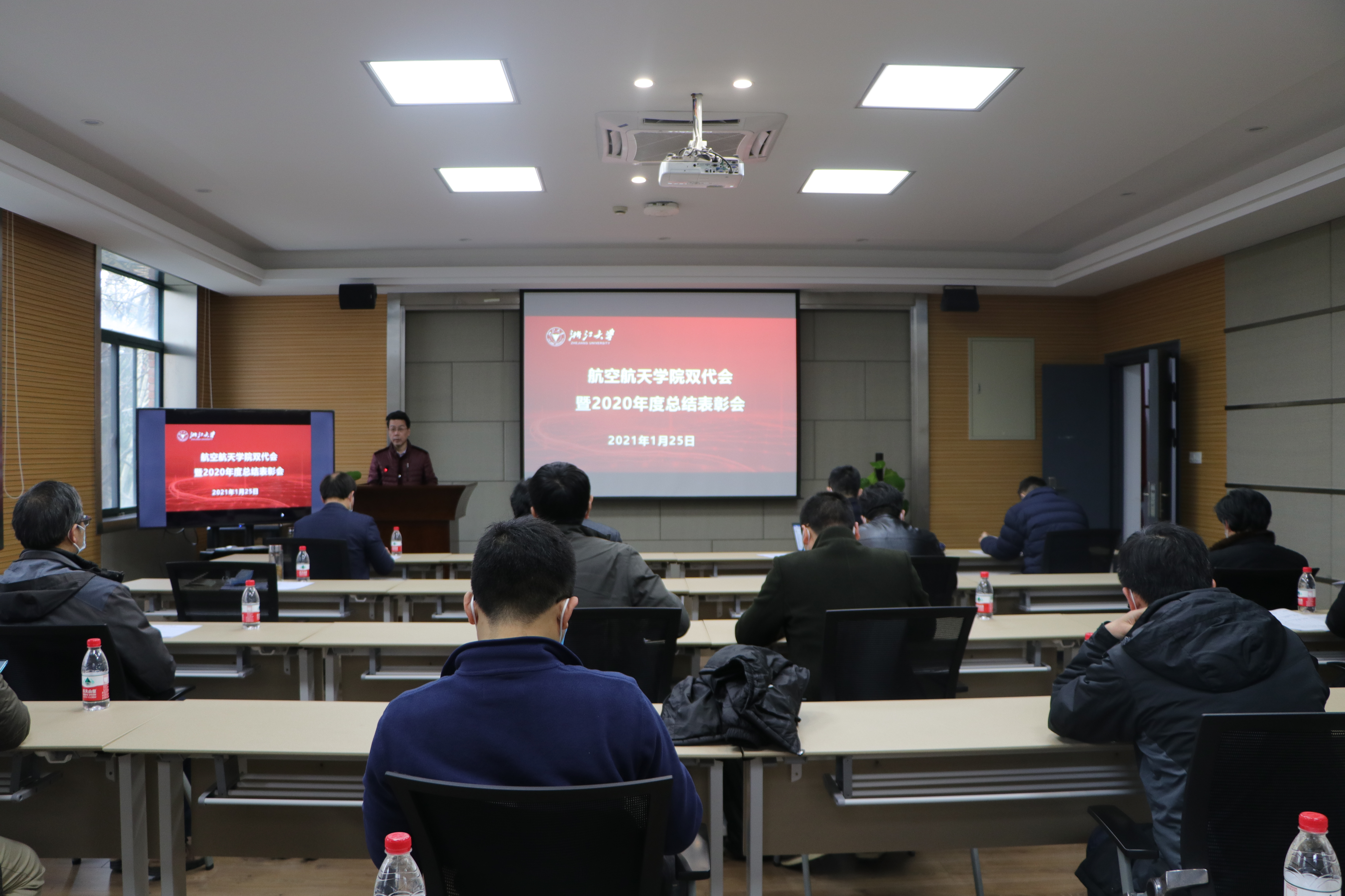 1月25日下午,航空航天学院双代会暨2020年度总结表彰会在教五333会议室顺利召开。此次会议采用线上线下形式,学院党政班子全体成员、双代会代表、特邀代表、获奖代表及全体教师参加,大家积极参与民主管理和监督,共同回顾2020年学院各项成果,认真把脉学科建设和学院各项工作,科学谋划“十四五”学院改革发展。
