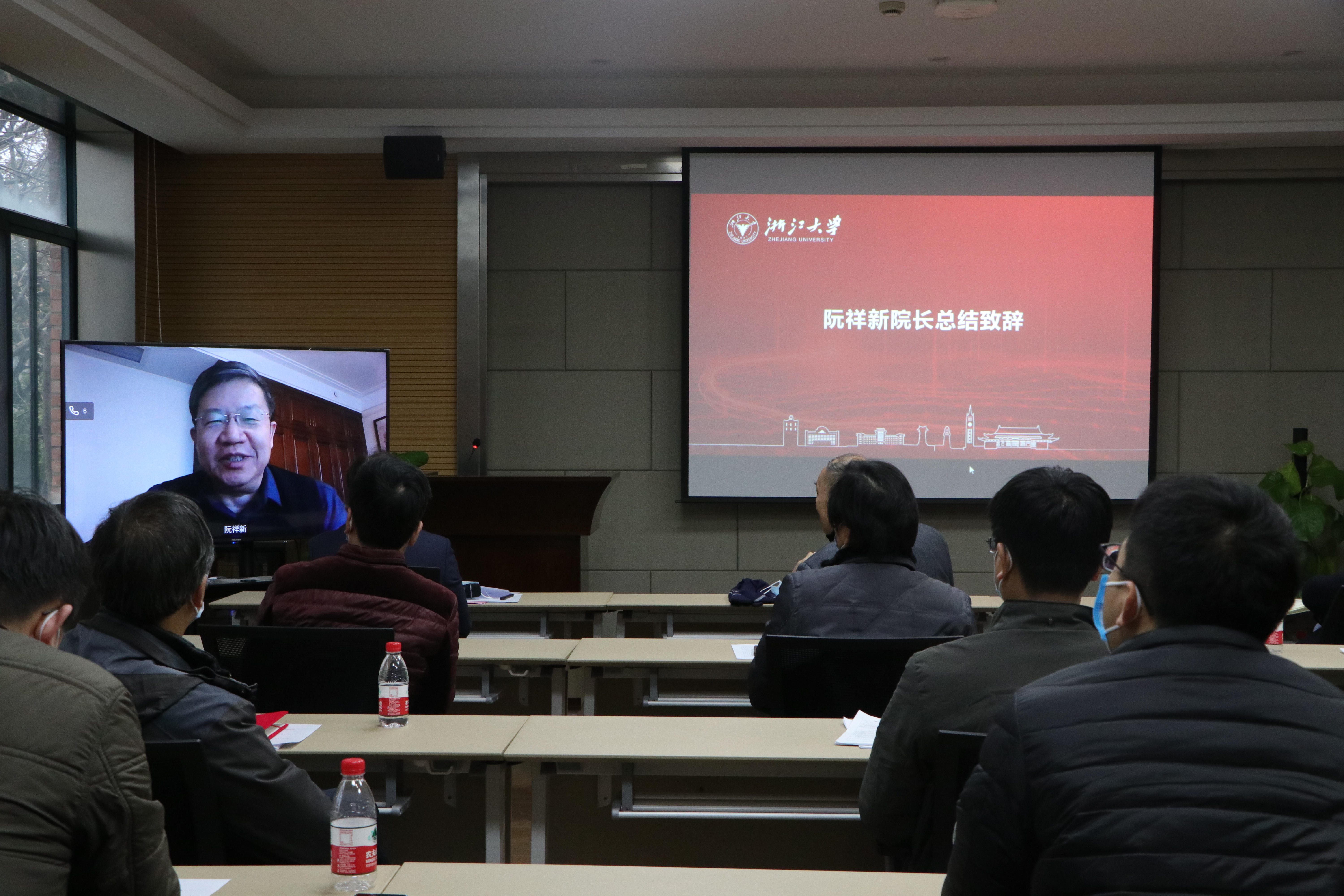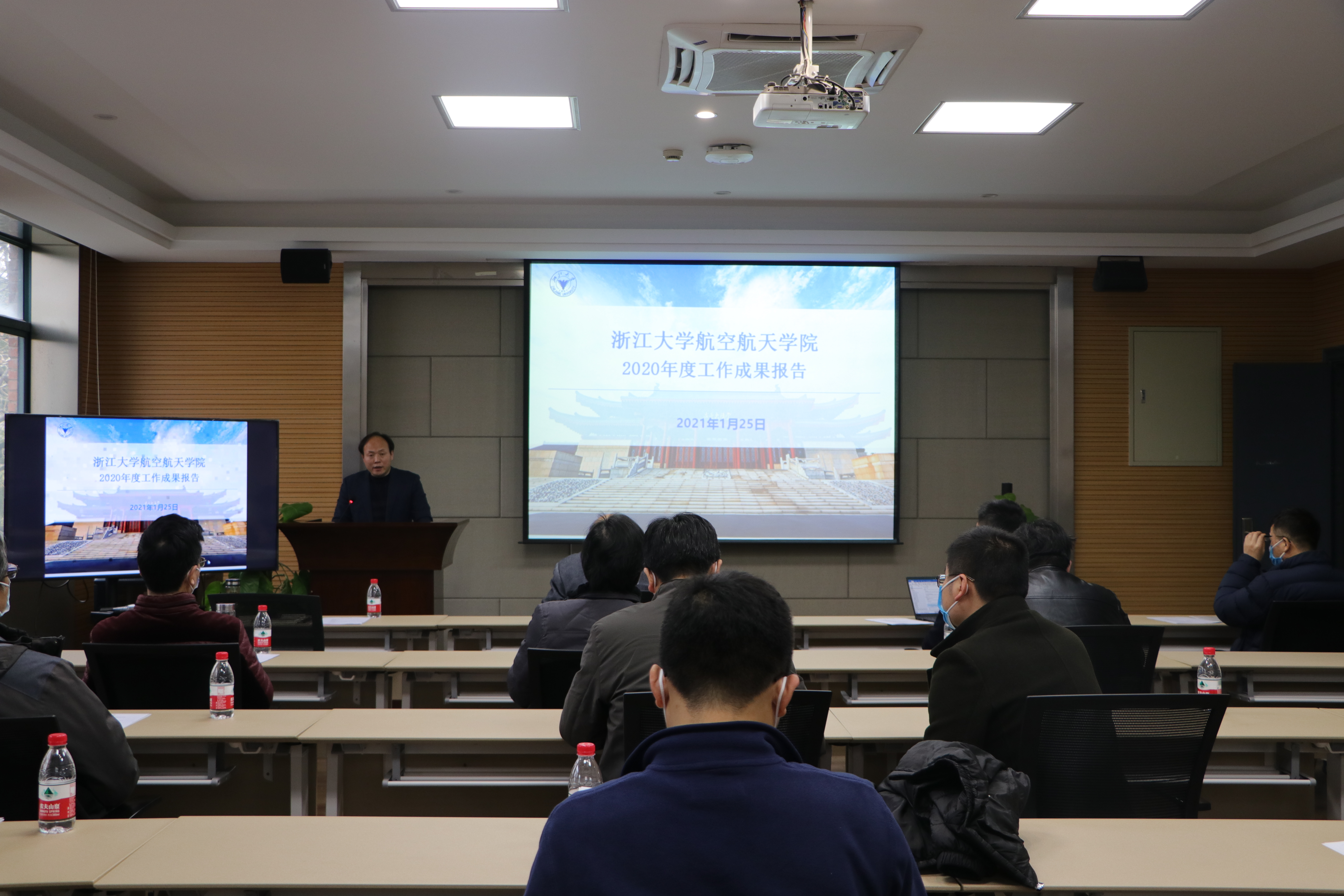 最后,学院院长阮祥新总结致辞。他提到, 2020年全院师生攻坚克难,忘我付出,围绕服务国家战略,科学研究、航宇人才引进、人才培养等工作取得了较好的成绩。他表示,学院正处于腾飞的阶段,要保持清醒,盯住强者、检讨不足、自我加压、居安思危,前瞻性研究下一步工作思路。重点要做好学科评估下篇文章,把学科评估短板问题固化为工作,做好方案,强化落实,扎实推进。要下功夫解决地位、贡献、影响力不够和人才培养质量问题。下一阶段学院要聚焦提升研究生生源质量、学院学科声誉、国家奖和国家级平台突破、学术共同体理念文化、培养方案优化、“人才培养、科技创新和学科创新”三位一体发展、国家重点单位就业保障、健康导学关系、重点科研团队条保建设、学院班子建设、教授委员会作用发挥、实验室建设、空间资源不足等问题,积极谋划,全力推动。