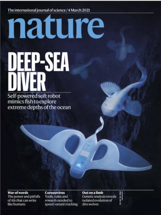 Self-powered soft robot inthe Mariana Trench. Nature 591, 66–71 (2021).